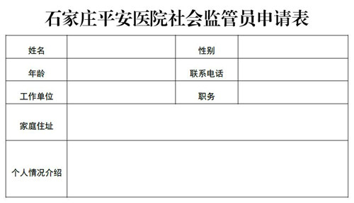 石家庄平安医院关于招募社会监督员的公告