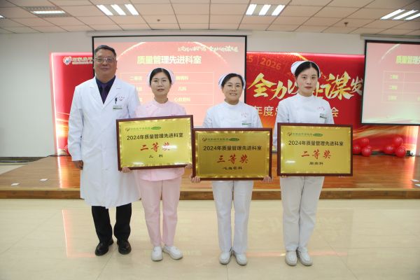 2024年,全体职工以目标为引领、以结果为导向,在竭力满足患者多样化诊疗需求的过程中涌现出一批成绩优异的员工及优秀科室。首先颁发的是集团医疗三基考核奖、集团护理三基考核奖、护理理论及技能考试奖以及穿刺能手奖,平安医院优质服务先进科室奖、诊疗技术创新奖、科室进步奖、胸痛中心建设突破奖。