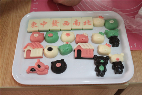 了解到巧克力的制作要义后,早已按耐不住的寿星们分组制作巧克力,形状各异、色彩多样的巧克力很快成型,在等待成品(需放冰箱冷冻十分钟)“出箱”的过程中,在牛主任的带领下,现场做起了成语接龙的游戏,接不成功者接受惩罚——高歌一曲,气氛一度达到白热化的程度。
